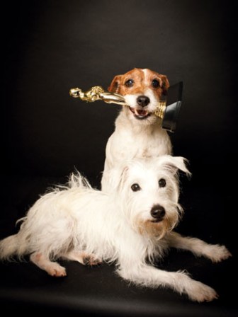Forget Brad Pitt (Moneyball, The Tree of Life) and George Clooney (The Descendants)…The real dog-eat-dog Oscar race tonight is between the playful pooches of The Artist (Uggie) and Beginners (Cosmo), as seen in this video here.