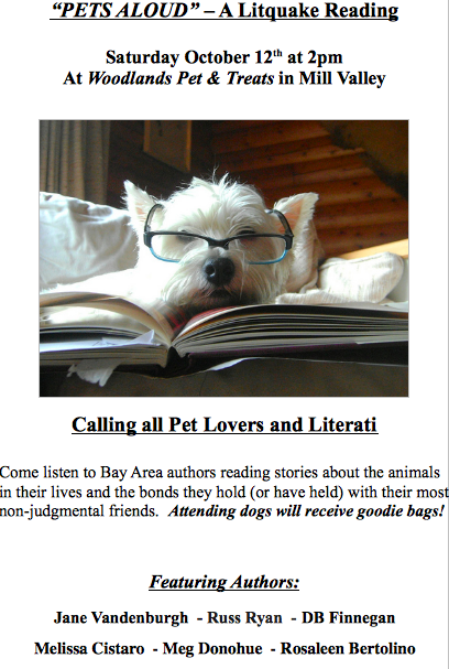 Is that the dog book world shaking, or are you just excited for this weekend’s Pets AloudLitquake event? If you don’t know, Litquake is the San Francisco Bay Area’s annual week-long literati celebration featuring scheduled readings all over the city.